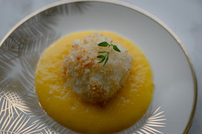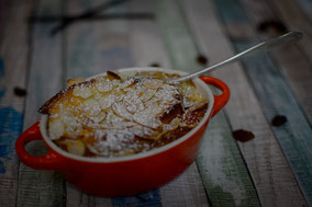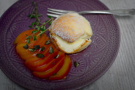 Quarksouffle mit Pfirsichen